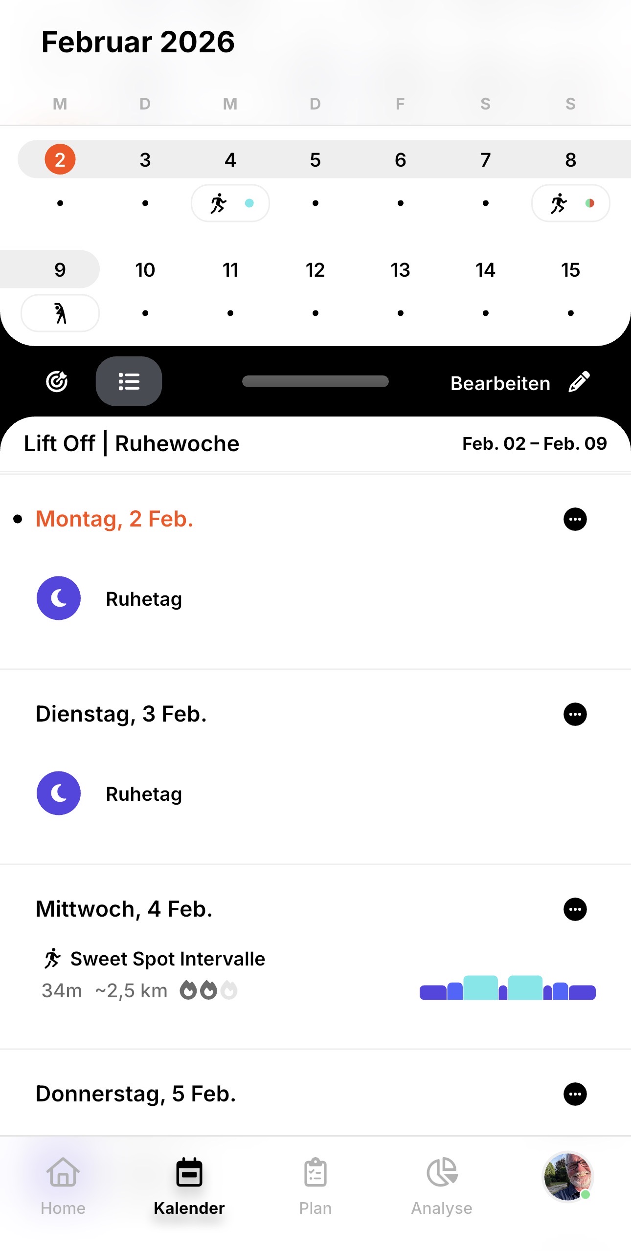 3. oben in der Monatsansicht den gewünschten Tag auswählen oder unten in der Ansicht zum gewünschten Tag scrollen