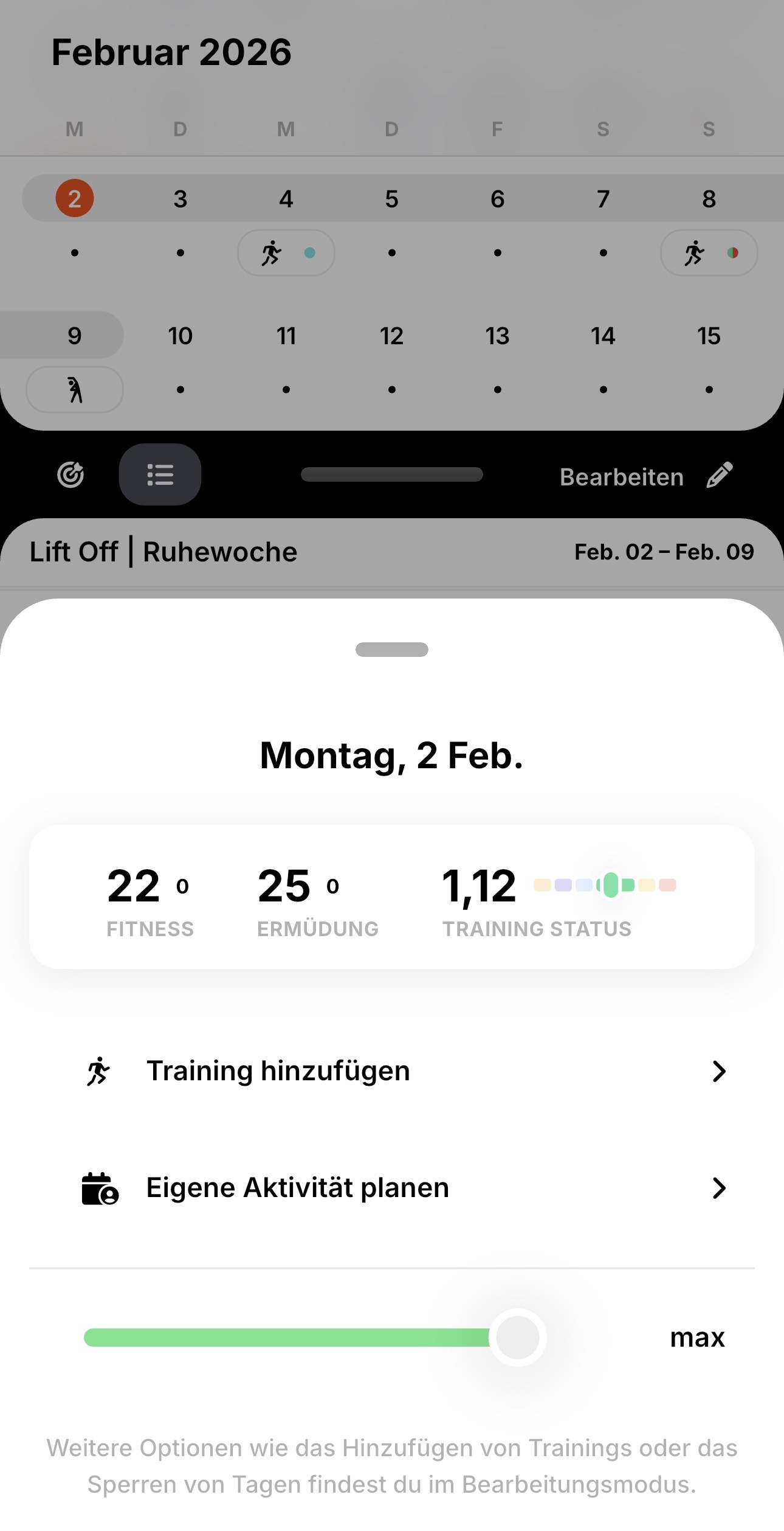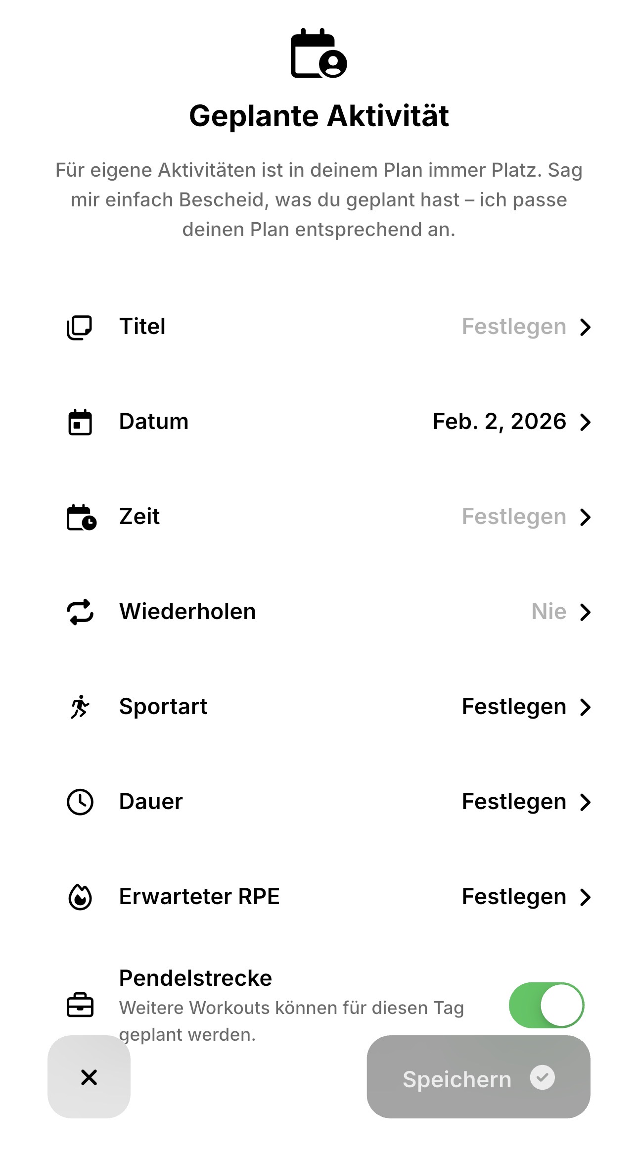 10. Bestätigung mit „Speichern“ und das neue Training wird für den gewählten Tag in den Kalender eingetragen