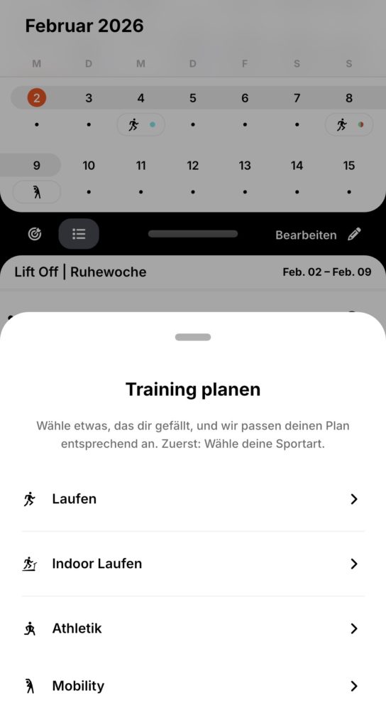 5. in der nächsten Ansicht entweder „Training hinzufügen“ oder „Eigene Aktivität planen“ anklicken. Ich entscheide mich für ersteres