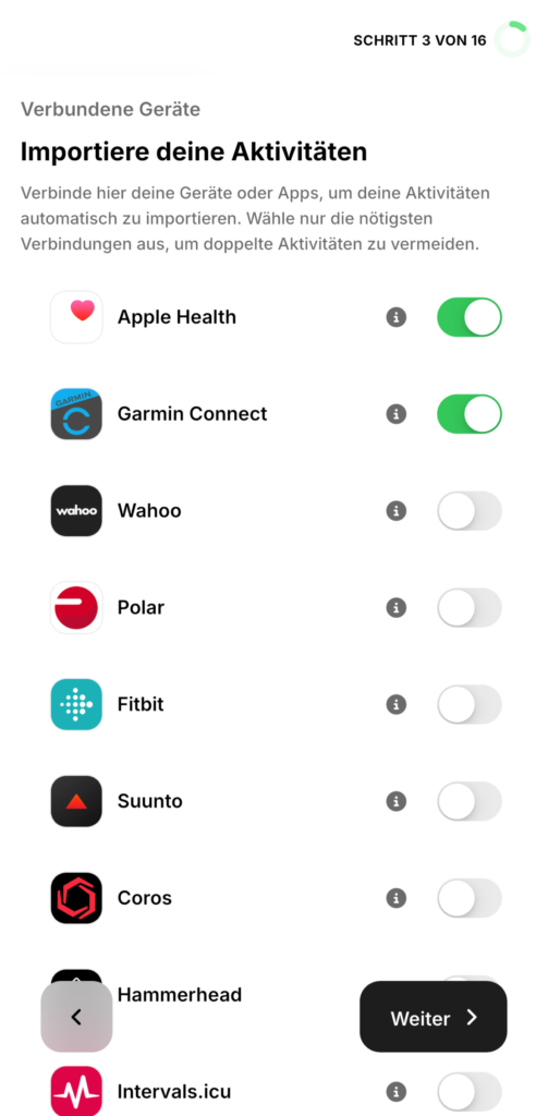 7. Schritt 3 – Importquellen für ältere Trainingseinheiten festlegen
