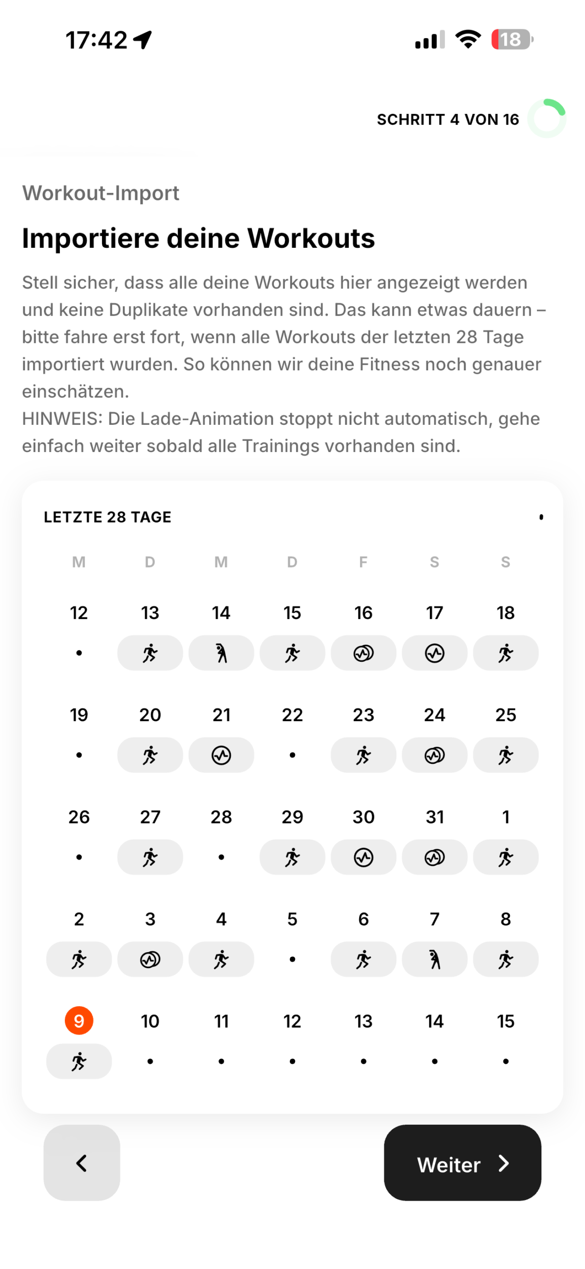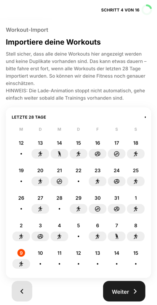 9. Schritt 5 – die erfassten Workouts werden analysiert