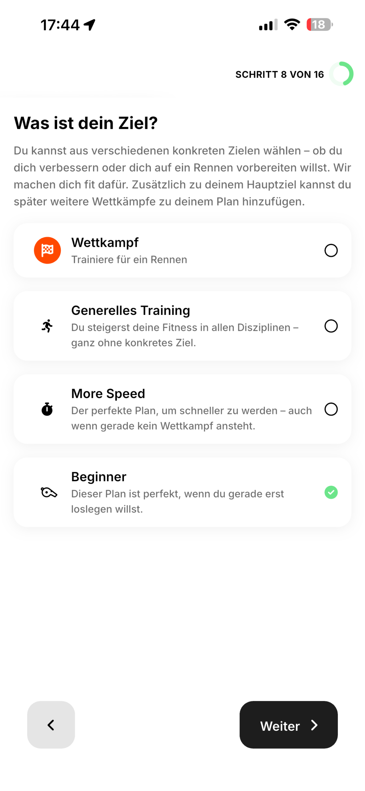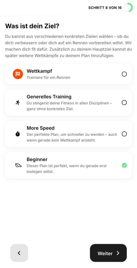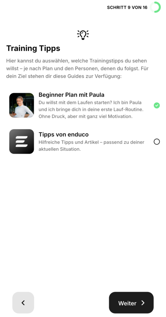 11. Schritt 9 – festlegen ob man Tipps zum Training haben möchte