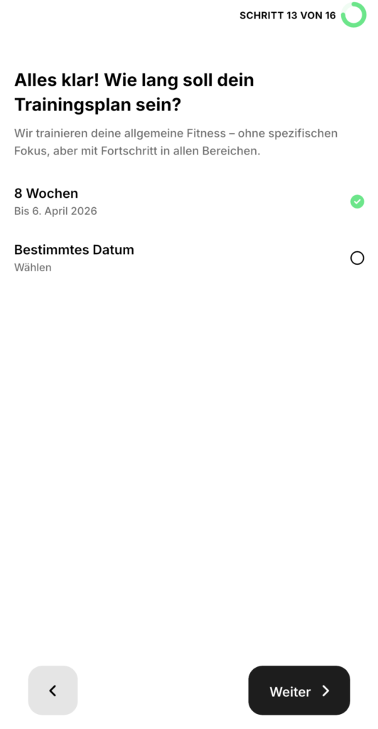14. Schritt 13 – Trainingsdauer festlegen