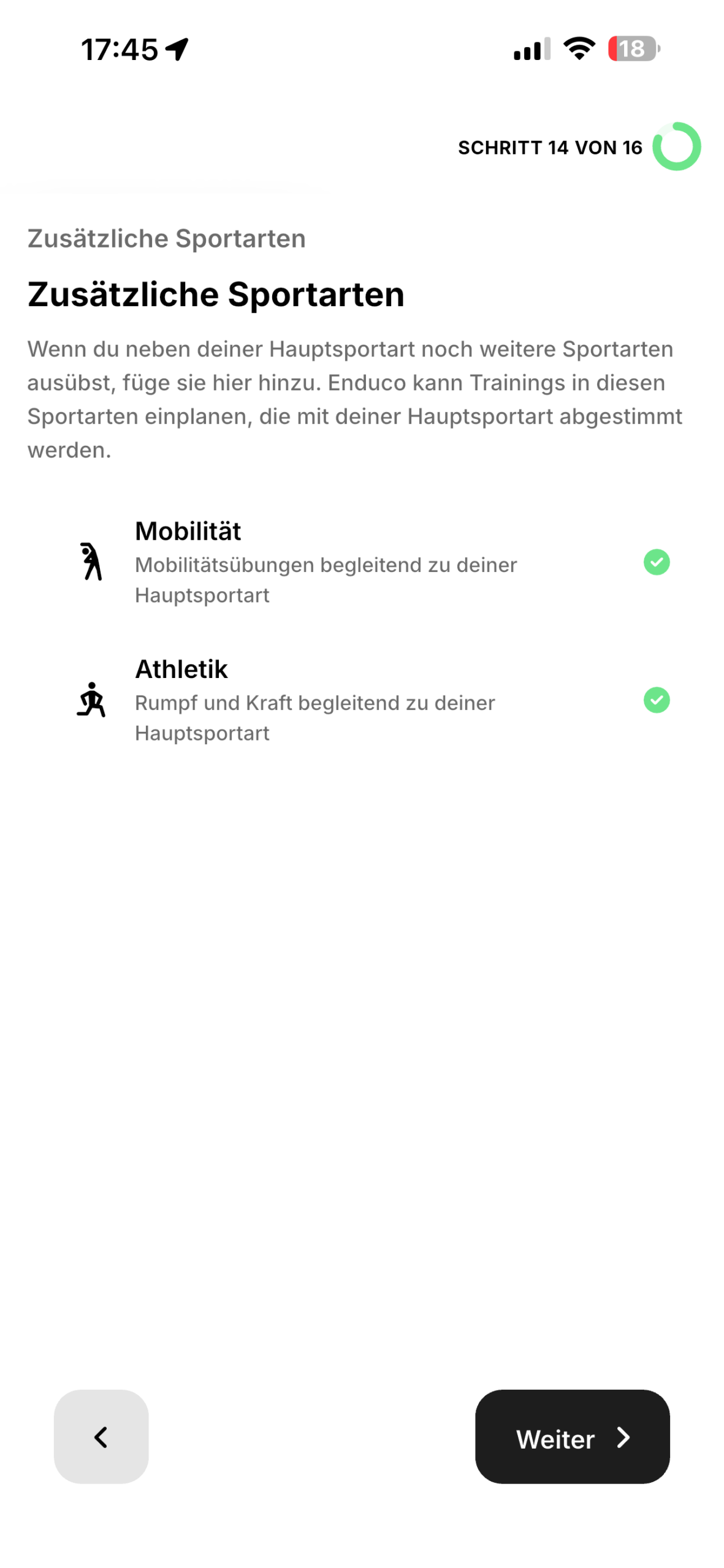 15 . Schritt 14 – zusätzliche Übungen wählen