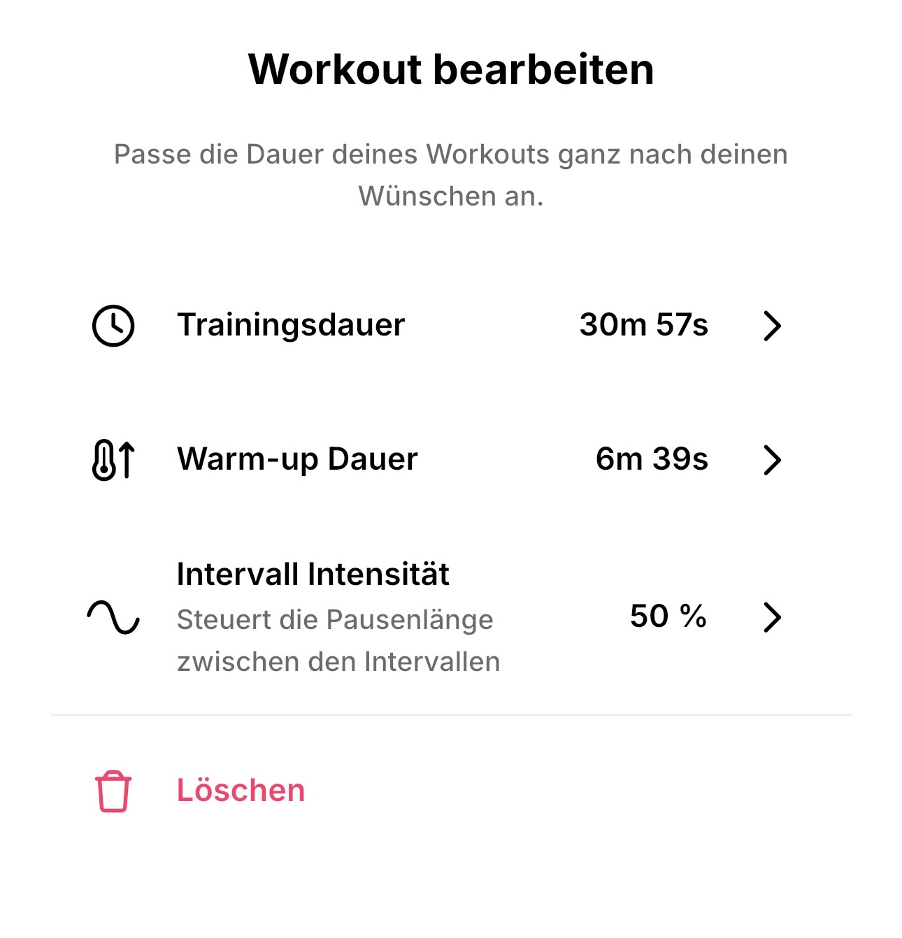 Hinweis: Nicht jedes Training kann in der Pausendauer bearbeitet werden. Besonders bei den Beginner- und auch die Kessession-Trainings ist nicht so viel anpassbar.