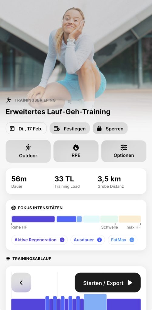 Bei jeder Anpassung wird der TL-Wert und die Distanz verändert. Der Training Load (TL) beschreibt die Gesamtbelastung deines Körpers durch Training – eine Kombination aus Intensität und Dauer.