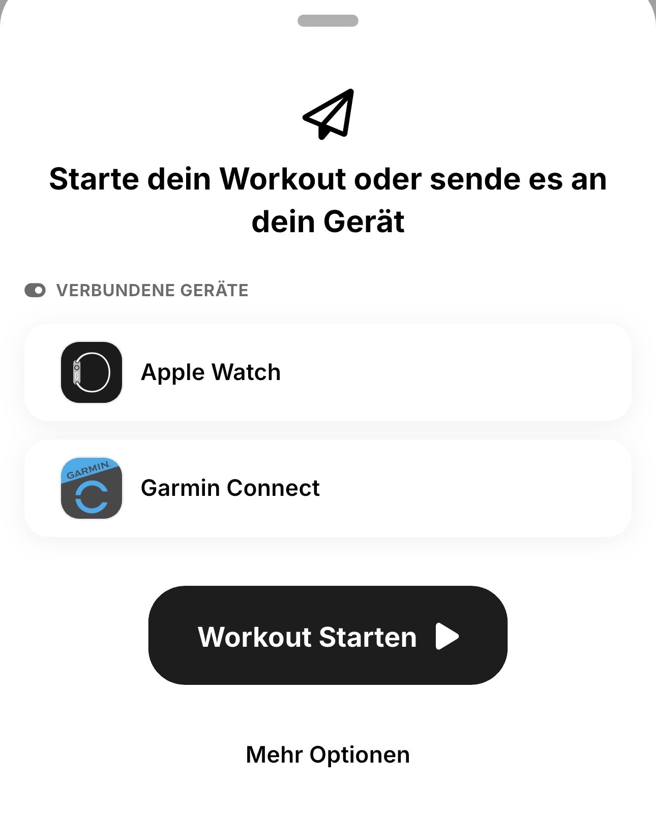 Wenn alles richtig gelaufen ist, wird das Enduco-Training in der Auswahl als violetter Eintrag angezeigt. Zum Start einfach darauf klicken und nach einem kurzen Countdown geht es los